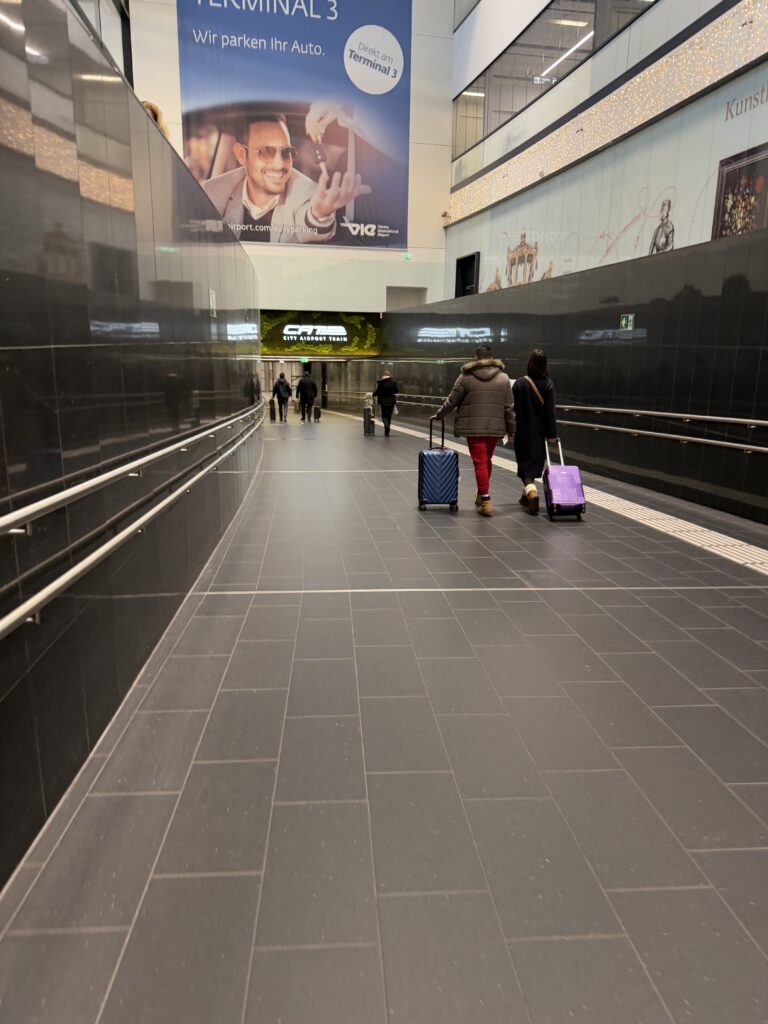①ウィーン国際空港で手荷物を受け取り、出口に進むと広々としたモールのような建物が広がります。