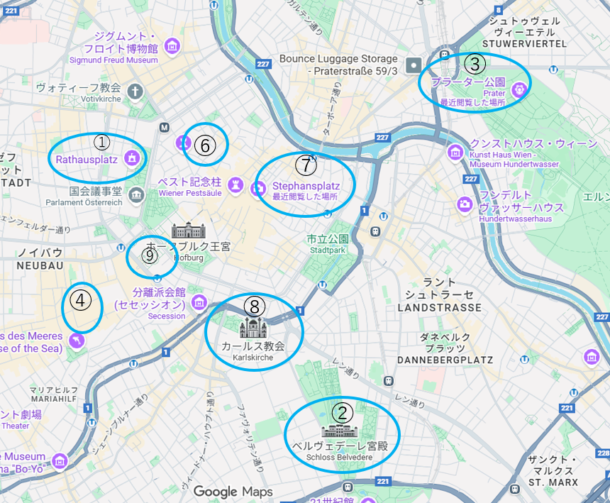 | ③プラーター | ★ | 昼 | 子供連れにはよい 少し場所が離れている |
