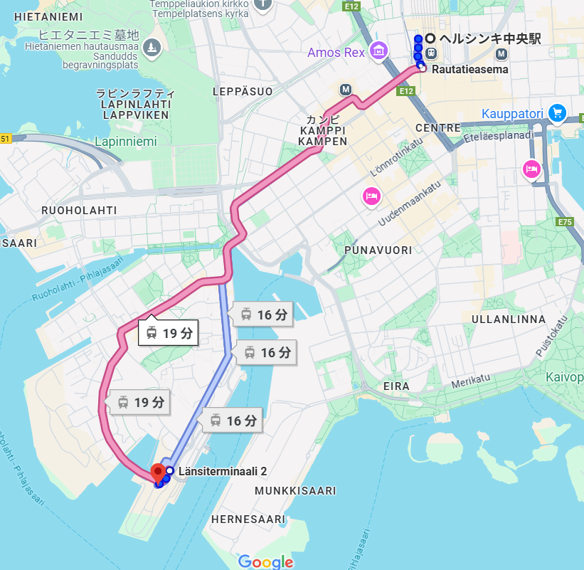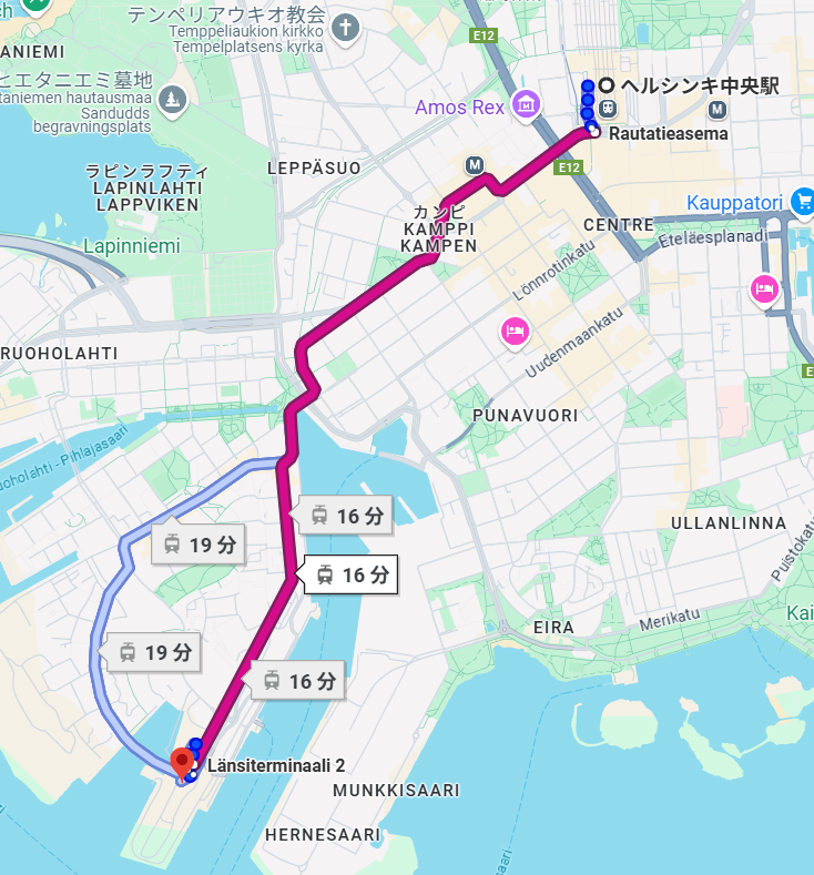 ヘルシンキ中央駅からヘルシンキ港まで